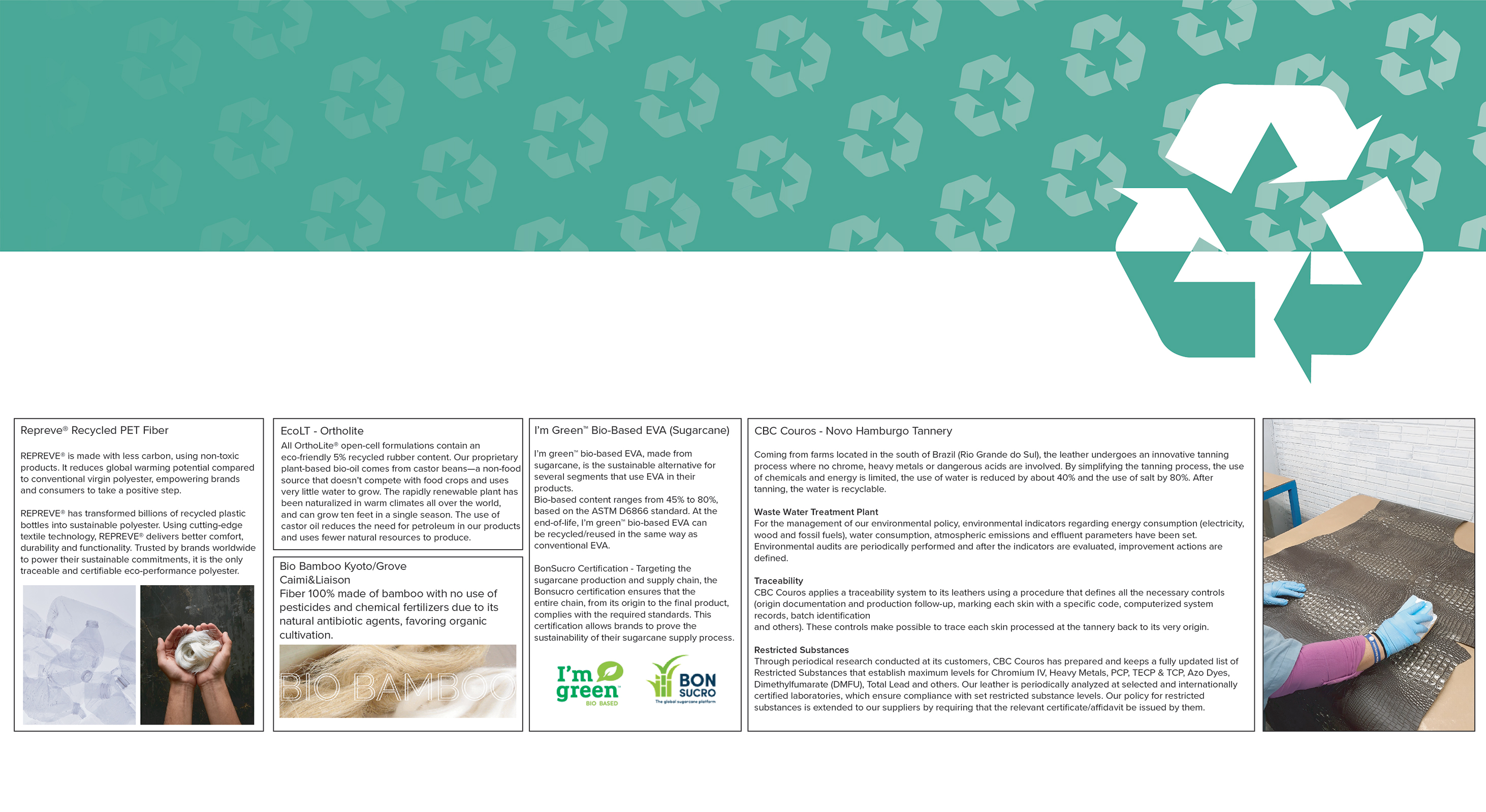 We have an ongoing practice of developing sustainable materials and processes. We offer solutions at different levels of sustainability for each client's needs.